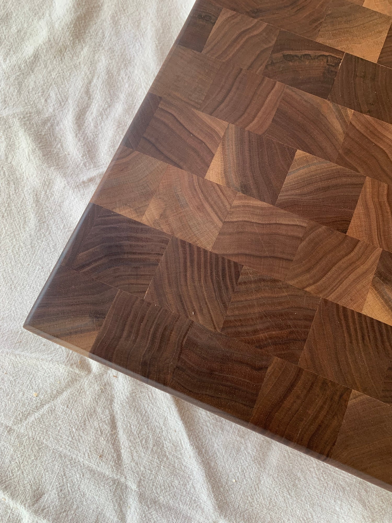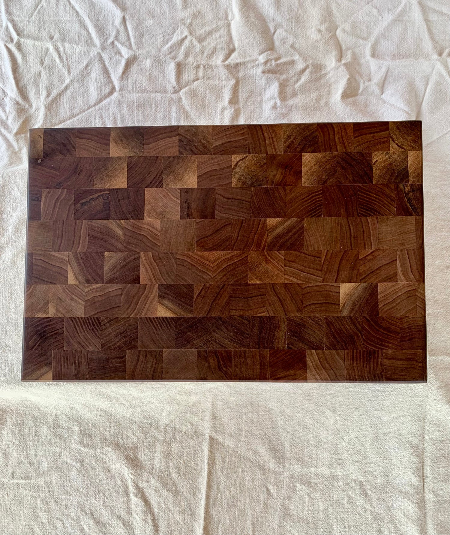 100% Noyer. Chaque pièce est unique, la planche pourrait différer quelque peu de l'image (couleur, insertion de bois, etc.).
