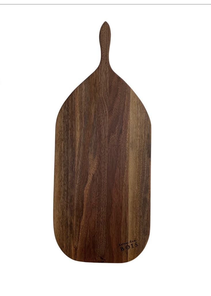 100% noyer. Chaque pièce est unique, la planche pourrait différer quelque peu de l'image (couleur, insertion de bois, etc.).