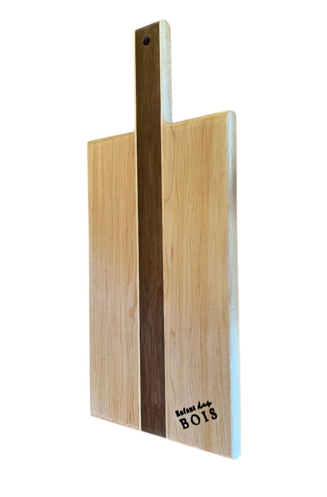 Érable (insertions noyer). Chaque pièce est unique, la planche pourrait différer quelque peu de l'image (couleur, insertion de bois, etc.).