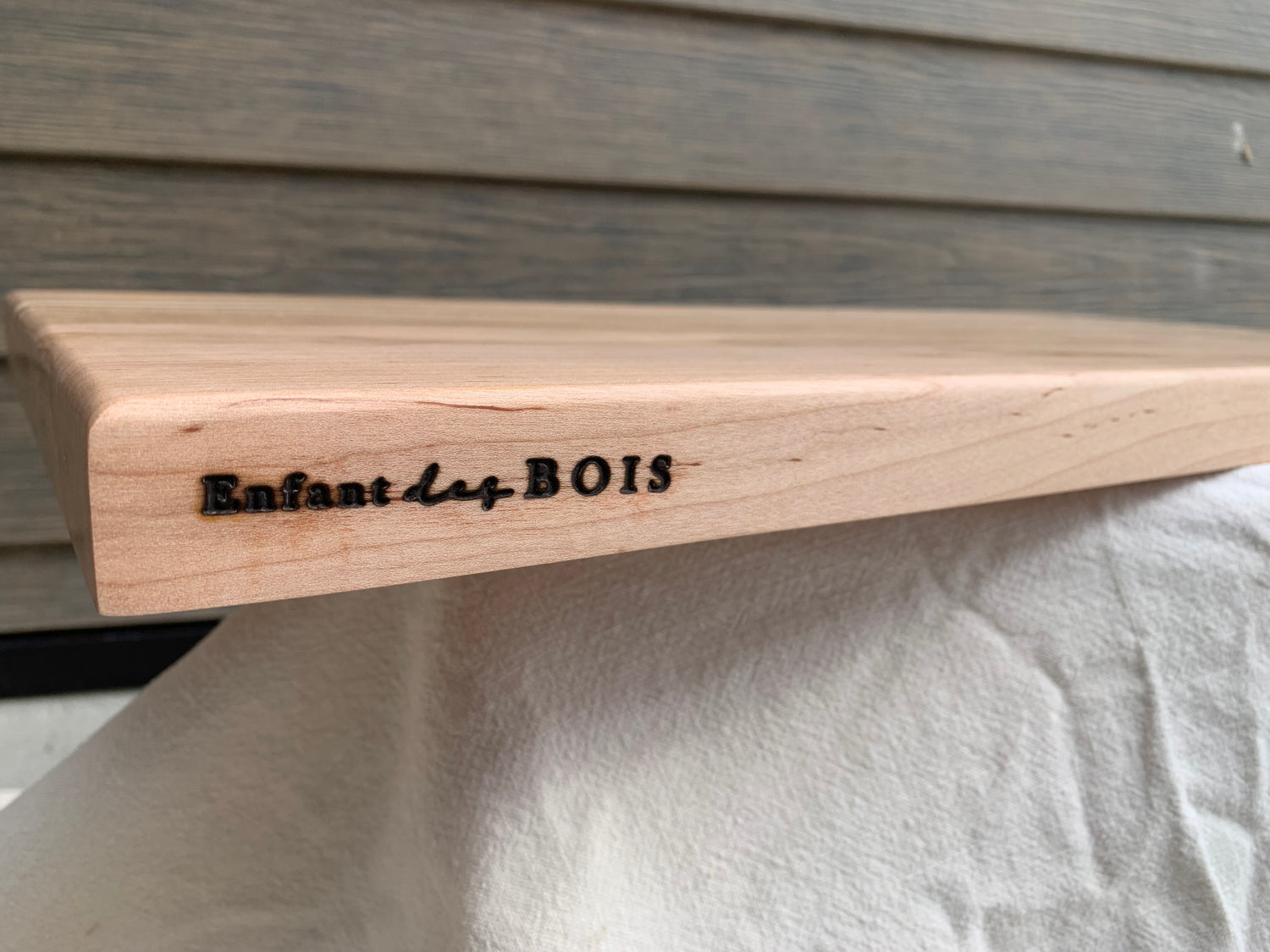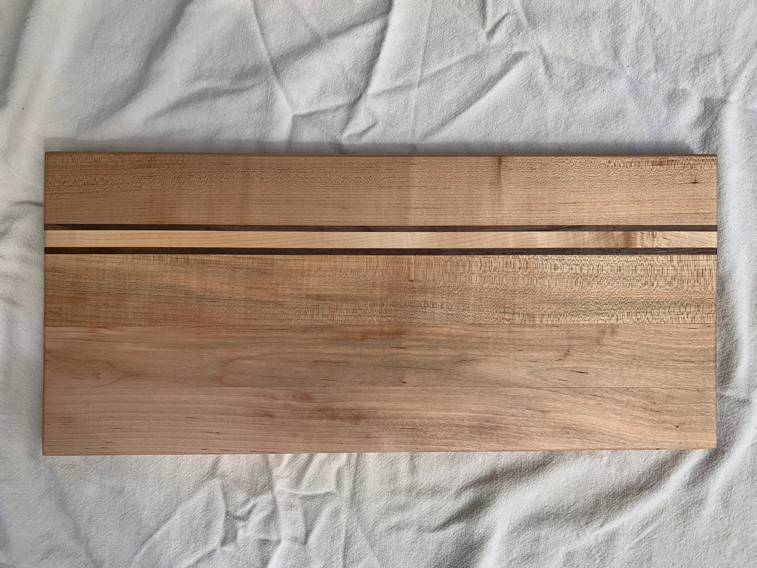 Érable et insertions noyer. Chaque pièce est unique, la planche pourrait différer quelque peu de l'image (couleur, insertion de bois, etc.).